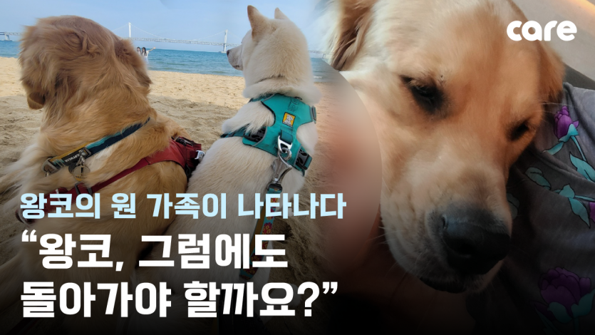 케어는 얼마 전 '부산에서 산책 도중 폭행을 당한 그레이하운드+골든리트리버 믹스견 ‘왕코’ '를 구조했습니다.