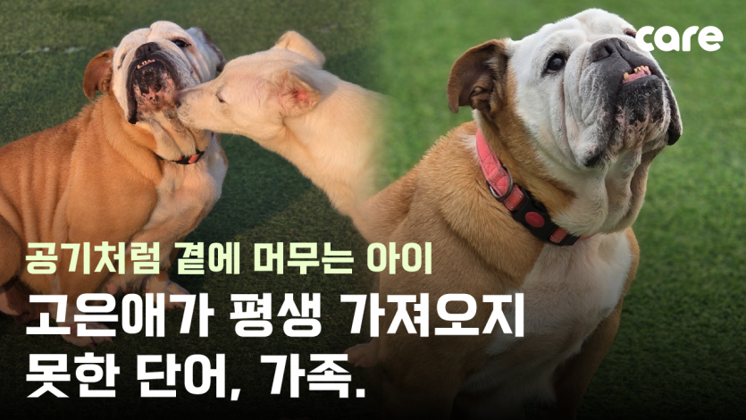 한때는 뼈만 남은 채로, 폐업한 수원 펫샵의 숨막히는 배설물 속에서 케어에게 구조되었습니다.