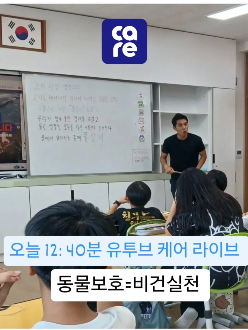 늘 구조와 입양 그리고 교육에 힘쓰시는 최근호 선생님을 케어는 응원합니다. 오늘 재밌는 수업 한번 케어 YouTube로 같이 보세요! 낮 12:40분
