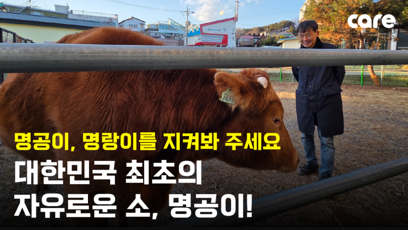 -케어가 명공이와 곧 태어날 아기 소 명랑이의 대부모를 기다립니다-