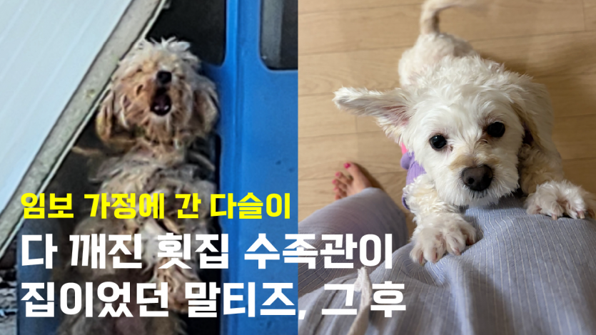 ❣️다 깨진 횟집 수족관이 집이었던 목줄 말티즈, 그 후