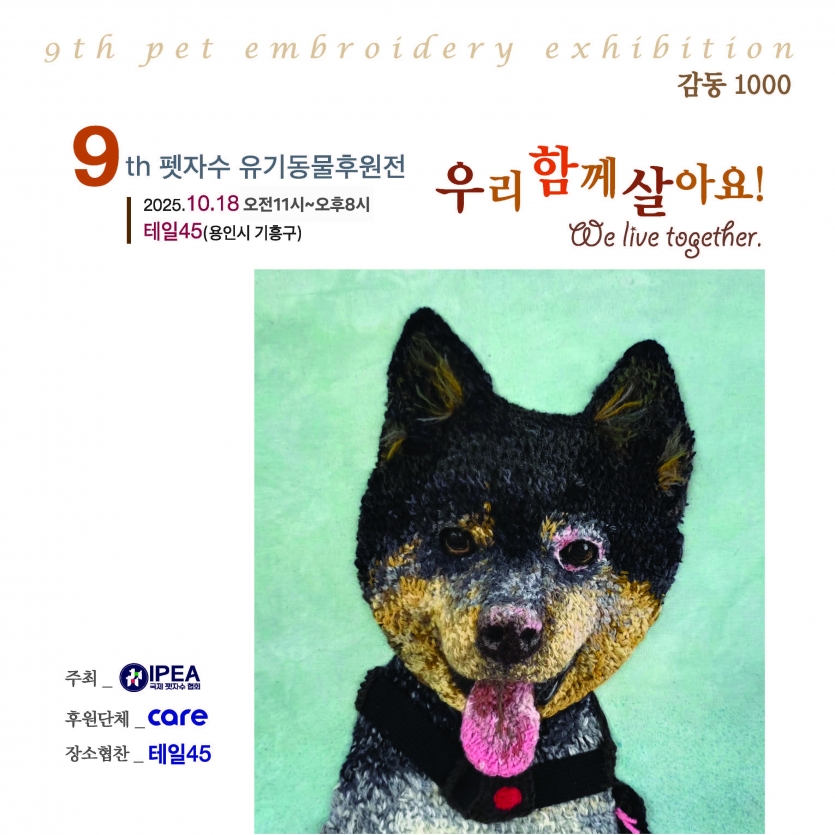 #우리함께살아요 #WeLiveTogether #펫자수전시 #IPEA #CARE #테일45 #반려동물전시 #유기동물후원전 #펫자수 #반려견과함께 #가을전시회 #동물사랑 #입양대신입양 #동물권단체케어 #용인전시회 #테일45카페 #케어후원