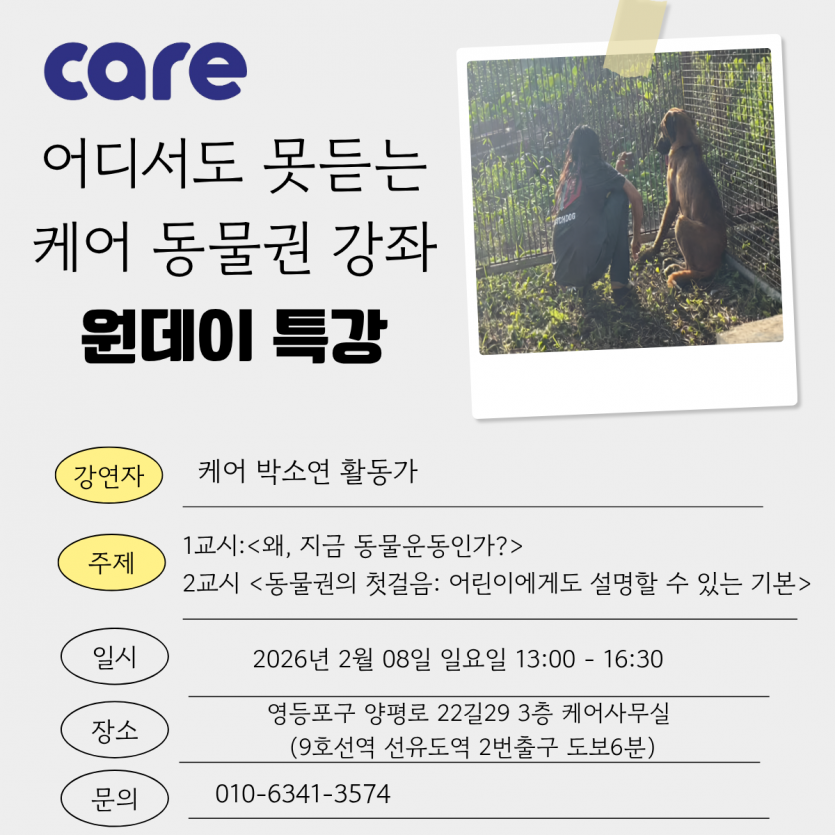 어디서도 못 듣는 케어 동물권 강좌. 원데이 특강
