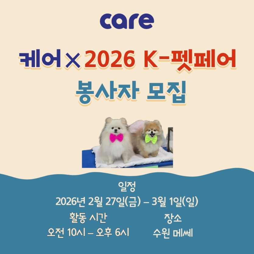 케어 × 2026 K-펫페어 봉사자님 모십니다!