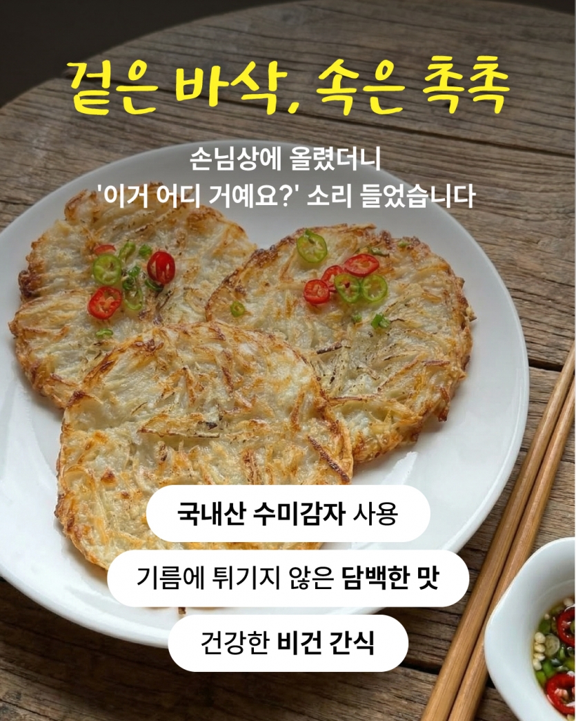 케어 비건 김치에 이어, 이번엔 완전히 다른 차원의 감자채 전을 소개합니다.