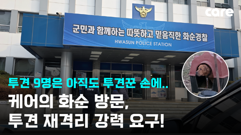 케어는 먼저 투견 현장에서 구조된 개 9명에 대해 즉각적인 재격리 조치가 반드시 필요하다고 강하게 요구했습니다.