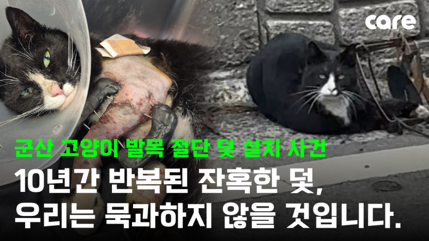 군산의 한 마을에서, 최소 2년 전부터—주민들에 따르면 길게는 10년 전부터—길고양이들을 겨냥한 발목 절단 덫이 반복적으로 설치되어 왔다는 충격적인 제보가 왔습니다.