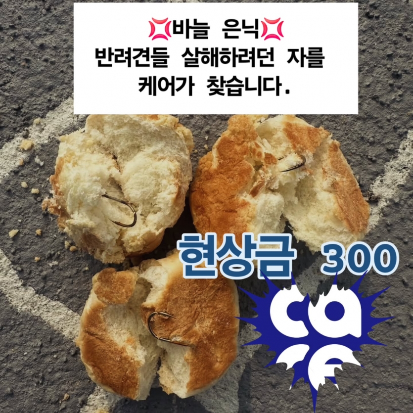 이 인간, 찾아봅시다!!! 나주시 반려견 운동장 ‘바늘 은닉’ 사건에 대해 케어가 현상금 300만원을 겁니다.