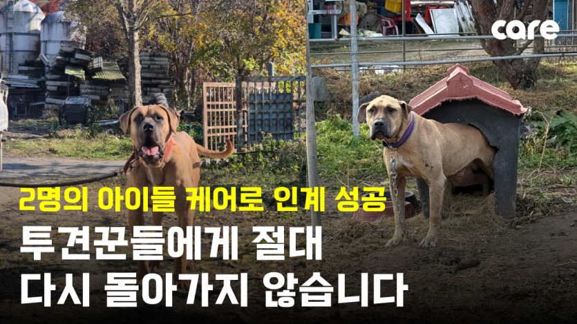 케어가 보호하게ㅡ되는 투견 2아이는 투견꾼들에게 돌아갈 일이 절대 없을 것입니다.