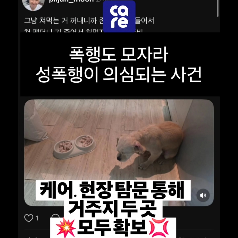 [속보] 긴급|동물학대 의심 사건 – 케어, 단서 없는 상황 속 주소지 확보